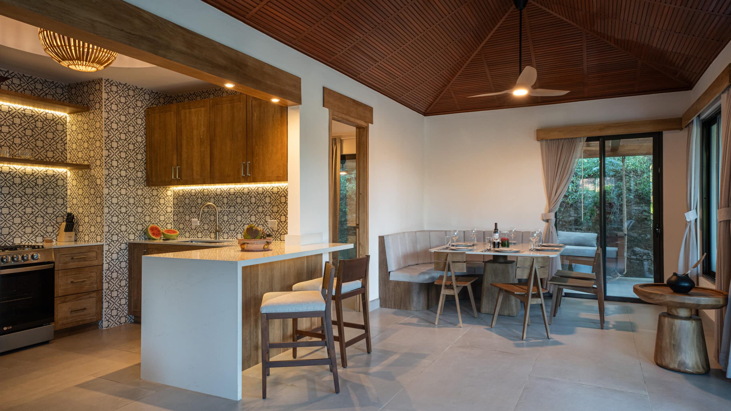 This charming casita offers the ideal space to unwind and enjoy total comfort. It features a private covered terrace, perfect for relaxing or sharing moments outdoors, along with a BBQ area, a hanging bed, and a cozy fire pit. Inside, you’ll find a functional kitchen, a comfortable living area, and two spacious bedrooms, each with a king bed and a private bathroom, creating an intimate and relaxed atmosphere for an unforgettable stay.